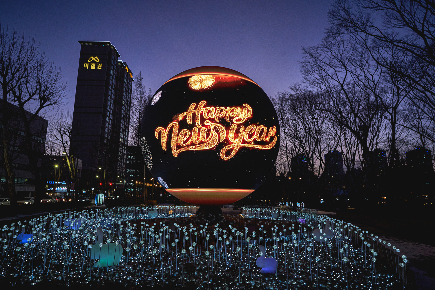 시간의 흐름에 따라 변화하는 화면 연출은 낮에는 밝고 경쾌한 분위기를, 밤에는 은은하고 따뜻한 빛으로 새해의 감성을 전합니다.