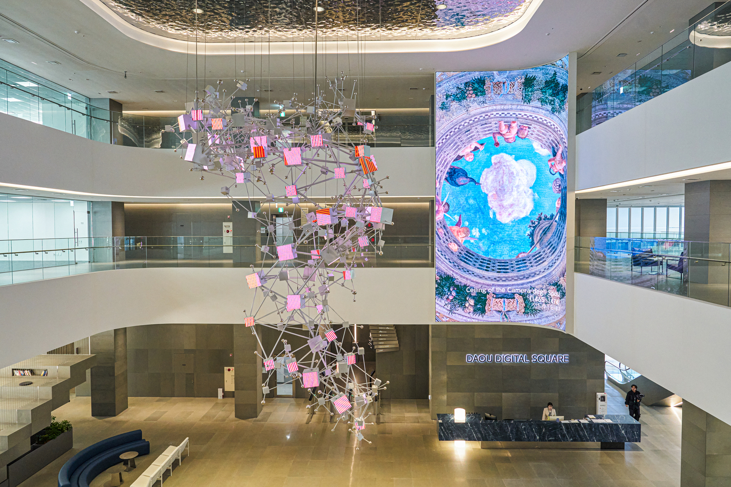 본 미디어아트 프로젝트는 기술과 공간, 브랜드 이미지가 유기적으로 연결되어 다우기술의 기업 가치를 간접 경험하는 상징적인 공간으로 완성하고자 합니다.