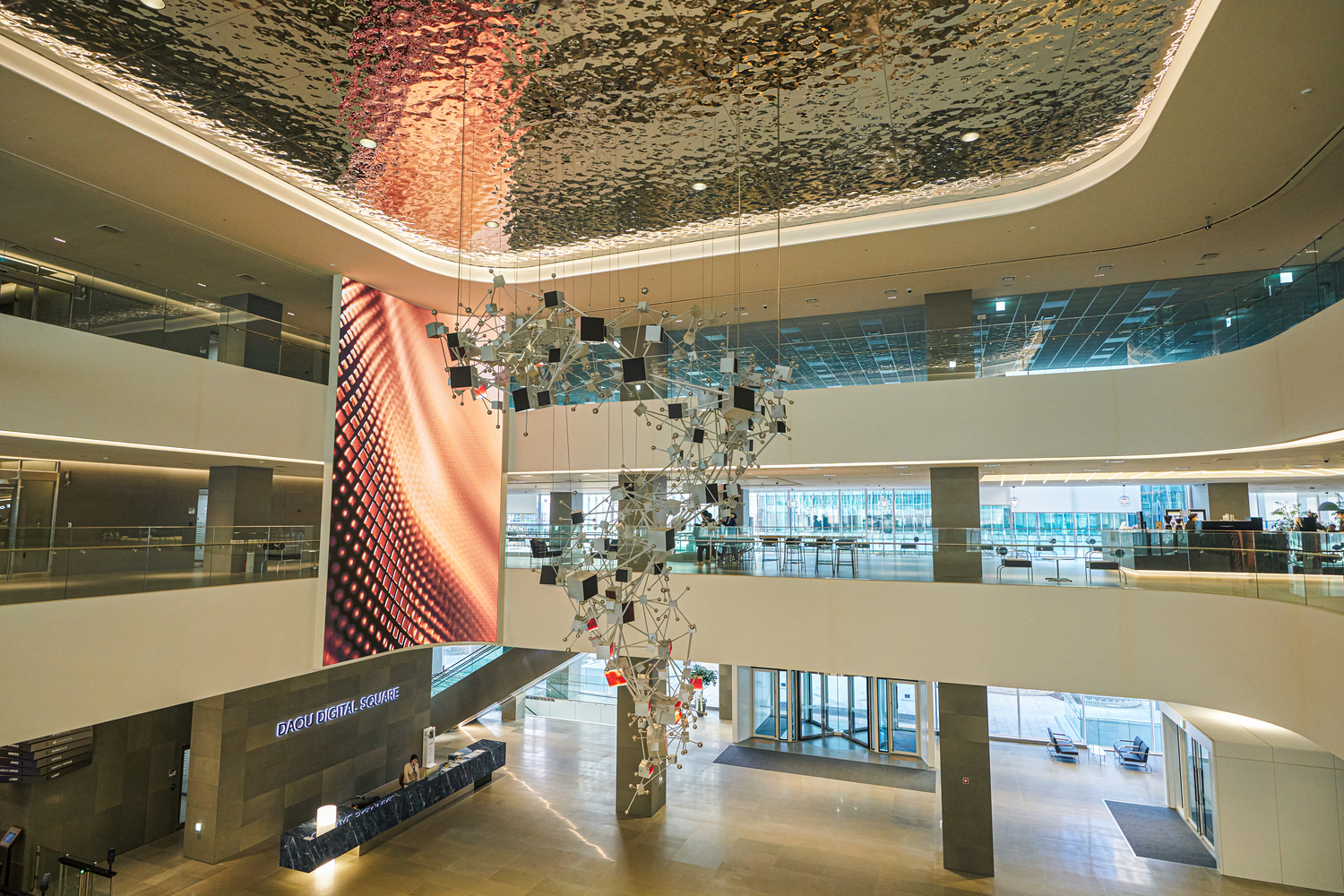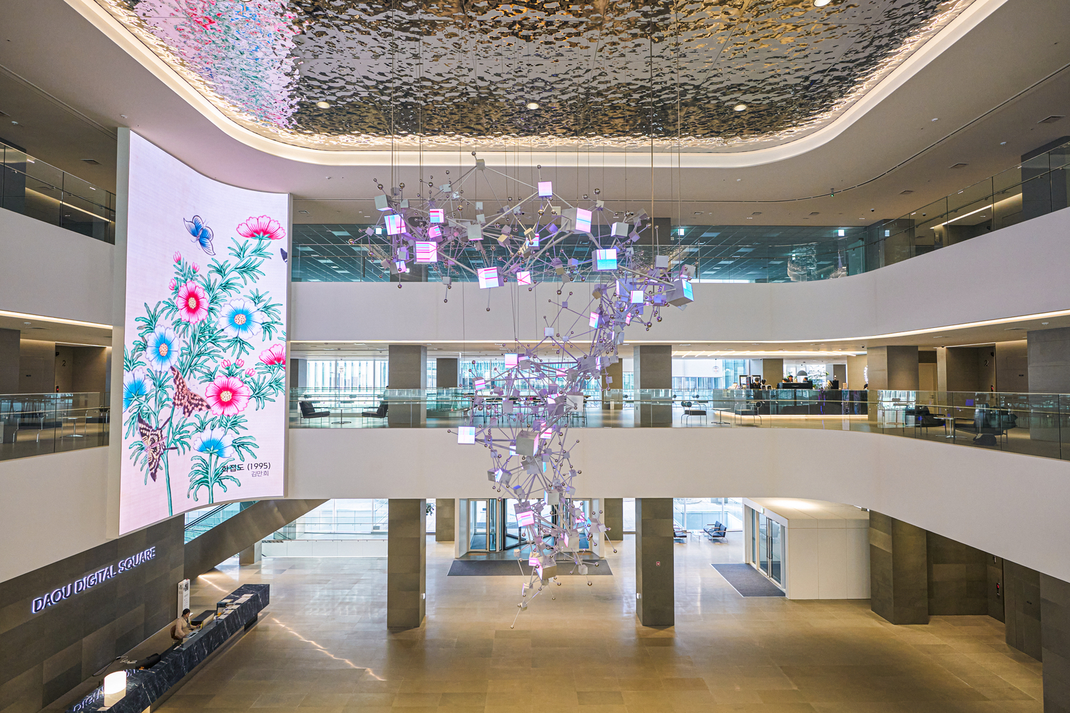 특히 로비를 오가는 임직원과 외부 방문객의 동선을 고려한 콘텐츠 흐름을 적용해, 짧은 체류 시간에도 기업의 이미지를 직관적으로 인지할 수 있도록 구성하였습니다.